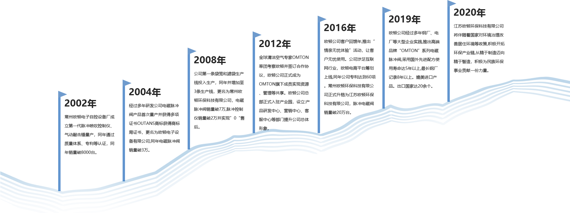 江蘇歐頓環(huán)保科技有限公司是一家專業(yè)從事袋式除塵器配件研發(fā)、生產(chǎn)、銷售和環(huán)保技術(shù)相關(guān)的企業(yè)。公司通過國家相關(guān)產(chǎn)品認(rèn)證企業(yè)、質(zhì)量等認(rèn)證企業(yè),公司擁有袋式除塵器技術(shù)研發(fā)中心、實(shí)驗(yàn)中心、檢測(cè)中心等配套實(shí)施。我們以全球科技發(fā)展為導(dǎo)向,2014年通過與國外知名工業(yè)清潔空氣凈化專業(yè)企業(yè)進(jìn)行合作,引進(jìn)先進(jìn)的空氣凈化技術(shù)和先進(jìn)的產(chǎn)生、管理模式,投入大量資金對(duì)電磁脈沖閥膜片和除塵濾料產(chǎn)品進(jìn)行研發(fā),并獲得顯著成果,使得歐頓產(chǎn)品在國內(nèi)市場(chǎng)占有一席之地,產(chǎn)品質(zhì)量媲美國外產(chǎn)品,使得歐頓公司在袋式除塵行業(yè)起到跨越性作用。我們的產(chǎn)品包括電磁脈沖閥、脈沖噴吹控制儀、除塵濾袋、除塵袋籠、除塵器專用氣缸、專用配件、電氣控制柜及過濾筒、氣動(dòng)助流產(chǎn)品等。其袋式除塵產(chǎn)品廣泛應(yīng)用于電力、冶金、建材、垃圾焚燒、化工等行業(yè)。在過去的數(shù)年里,公司的產(chǎn)品和服務(wù)得到了市場(chǎng)的認(rèn)可及肯定,產(chǎn)品出口到數(shù)十個(gè)國家。